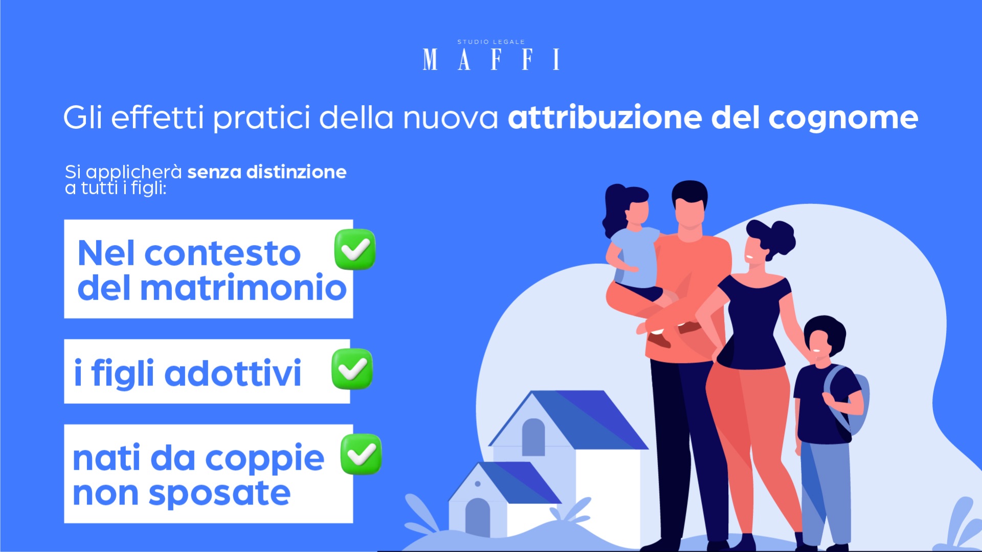 In questi giorni, il Parlamento sta discutendo in relazione ai disegni di legge sull’attribuzione del cognome della madre. L’auspicio è che le Camere colgano l’occasione per rivedere in modo coerente la materia, con l’obiettivo di garantire definitivamente il rispetto dei diritti e dell’eguaglianza di entrambi i genitori. Considerata l’attuale evoluzione delle norme sull’attribuzione del cognome ai figli, lo Studio Legale Maffi resta a disposizione per approfondimenti e consulenze legali: info@studiolegalemaffi.it