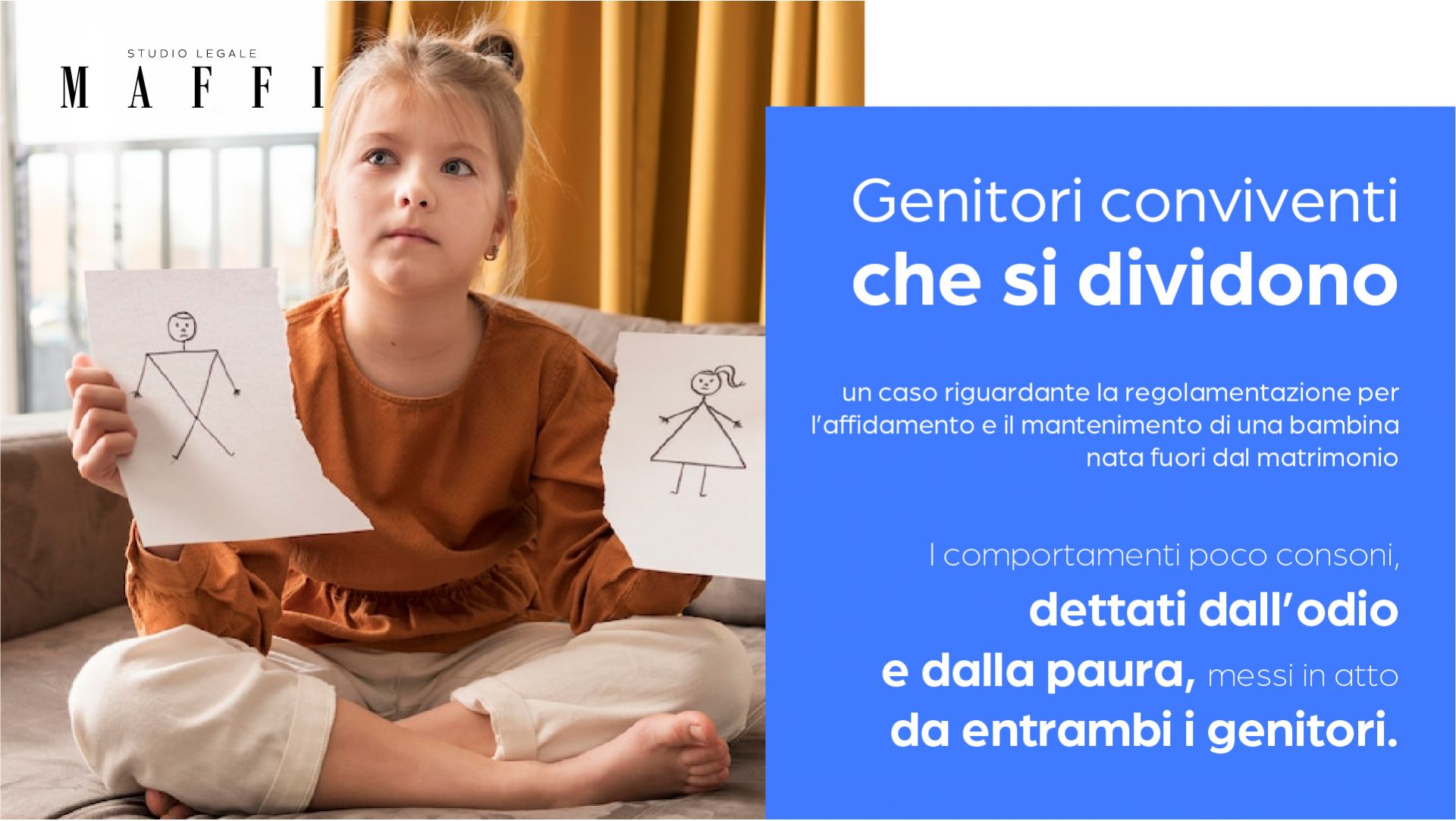 In questa vicenda troviamo due genitori che hanno posto fine al rapporto e aperto una controversia per l’affidamento della figlia di 5 anni. Tale controversia è sfociata in dispetti e minacce messe in atto senza tenere conto del bene della bambina. La figlia ha perciò vissuto un periodo molto delicato della crescita in un clima poco sereno. Un aspetto impattante sullo sviluppo della persona. In questo caso specifico di affidamento e mantenimento di minore nato fuori dal matrimonio, purtroppo la bambina si è ritrovata continuamente coinvolta nelle controversie. La bimba ha perciò fatto esperienza sia degli appellativi poco consoni utilizzati dal padre in riferimento all’ex compagna, sia del timore della madre nei confronti dell’uomo. Il tutto si è concretizzato in una situazione di estrema instabilità e di influenze contrastanti. Un clima che l’ha con ogni buona probabilità portata a non sapere più distinguere il falso dal vero. Oltre che a non avere un modello comportamentale di riferimento.